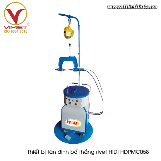 Máy tán đinh bố thắng này sử dụng nguyên lý điện - thủy lực, sở hữu lực tán lớn và có khả năng đột lỗ & tán các loại đinh tán bằng đồng, nhôm và sắt.